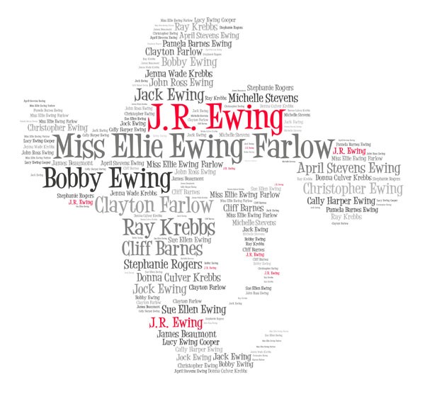 We were excited to be sent this genius piece of artwork using all the names of the Dallas TV series characters to create the face of JR Ewing.